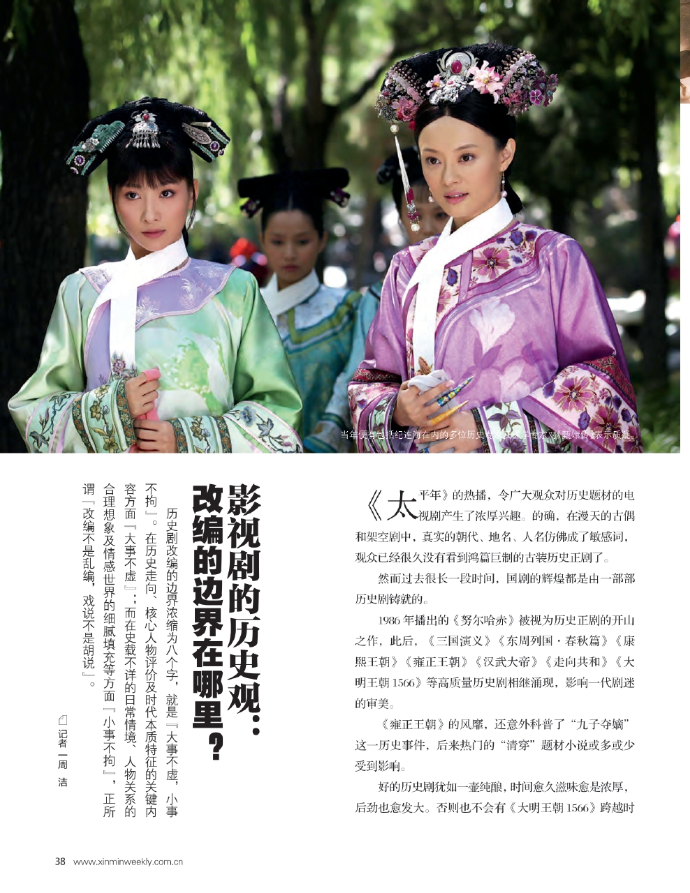 历史剧改编的边界浓缩为八个字,就是“大事不虚,小事不拘”。在历史走向、核心人物评价及时代本质特征的关键内容方面“大事不虚”;而在史载不详的日常情境、人物关系的合理想象及情感世界的细腻填充等方面“小事不拘”,正所谓“改编不是乱编,戏说不是胡说”。