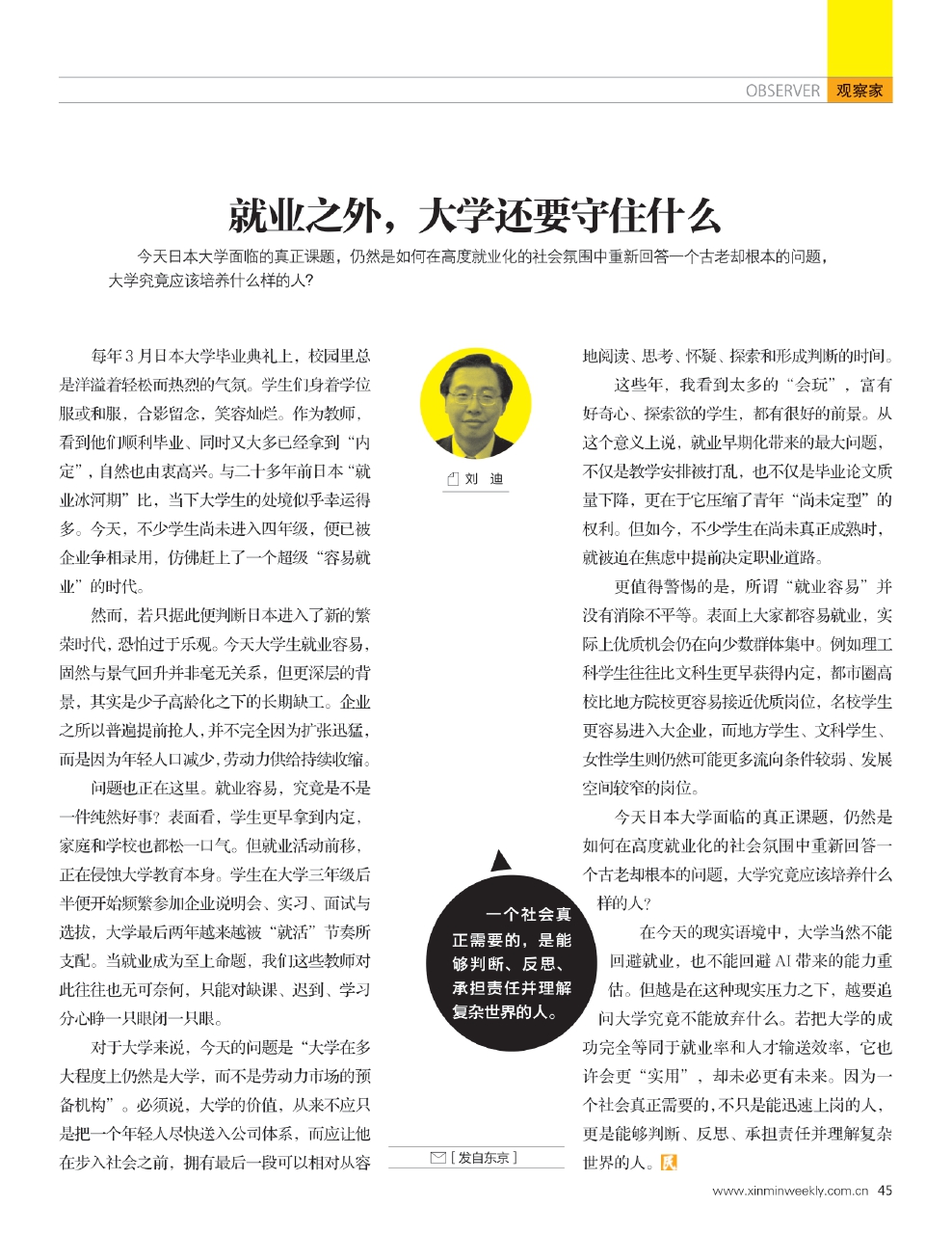 今天日本大学面临的真正课题,仍然是如何在高度就业化的社会氛围中重新回答一个古老却根本的问题,大学究竟应该培养什么样的人?