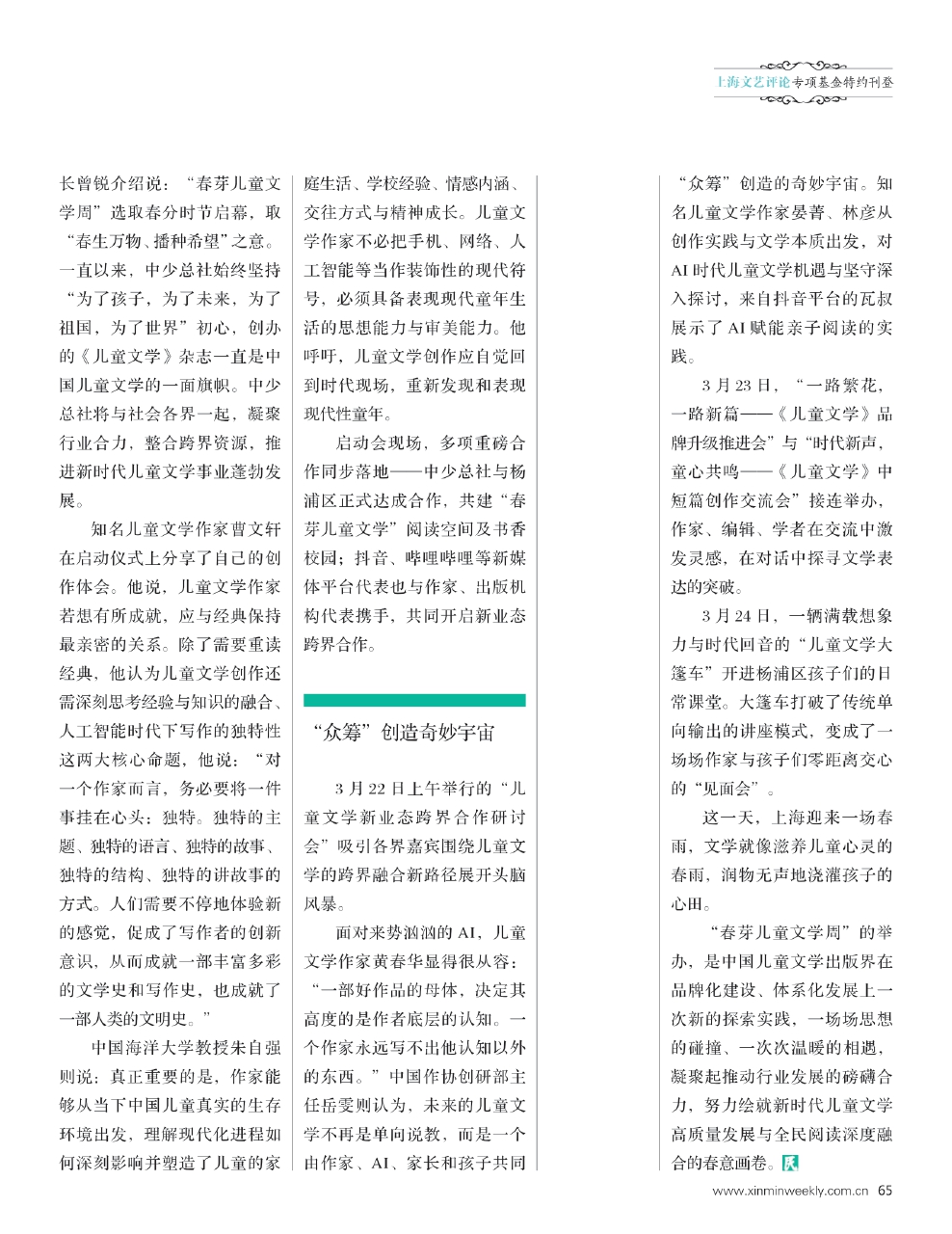 上图:春芽儿童文学周在上海杨浦区举办。本次“春芽儿童文学周”围绕创作、研讨、出版、传播、阅读全链条推出一系列高品质主题活动。