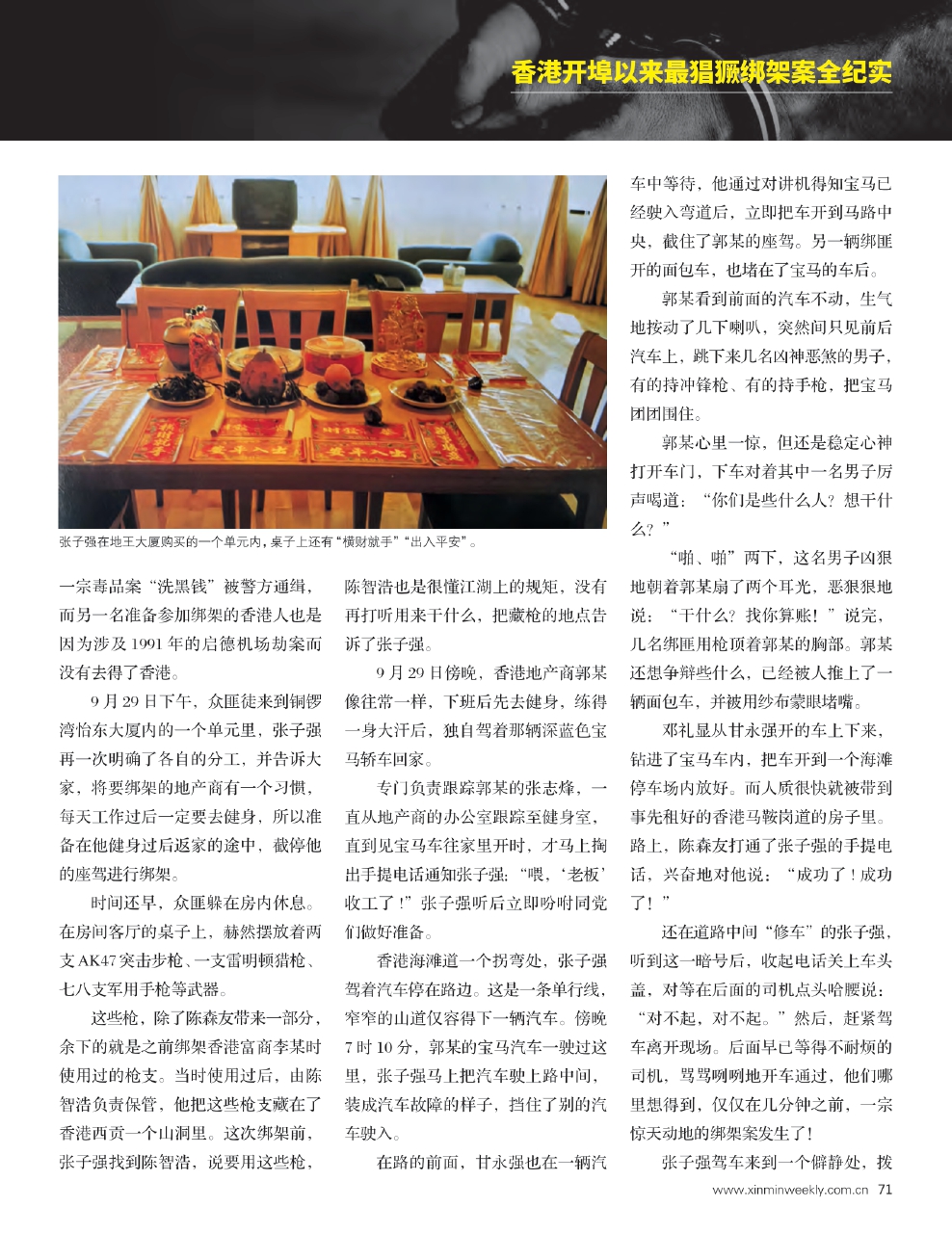 张子强见大家没有异议,最后说:“明天一大早,你们各自回香港,但是,到香港后就集中在香港铜锣湾怡东大厦附近一个租屋内,那是我们事先租好的地方,大家在那里休息,拿武器,等待时机下手。”