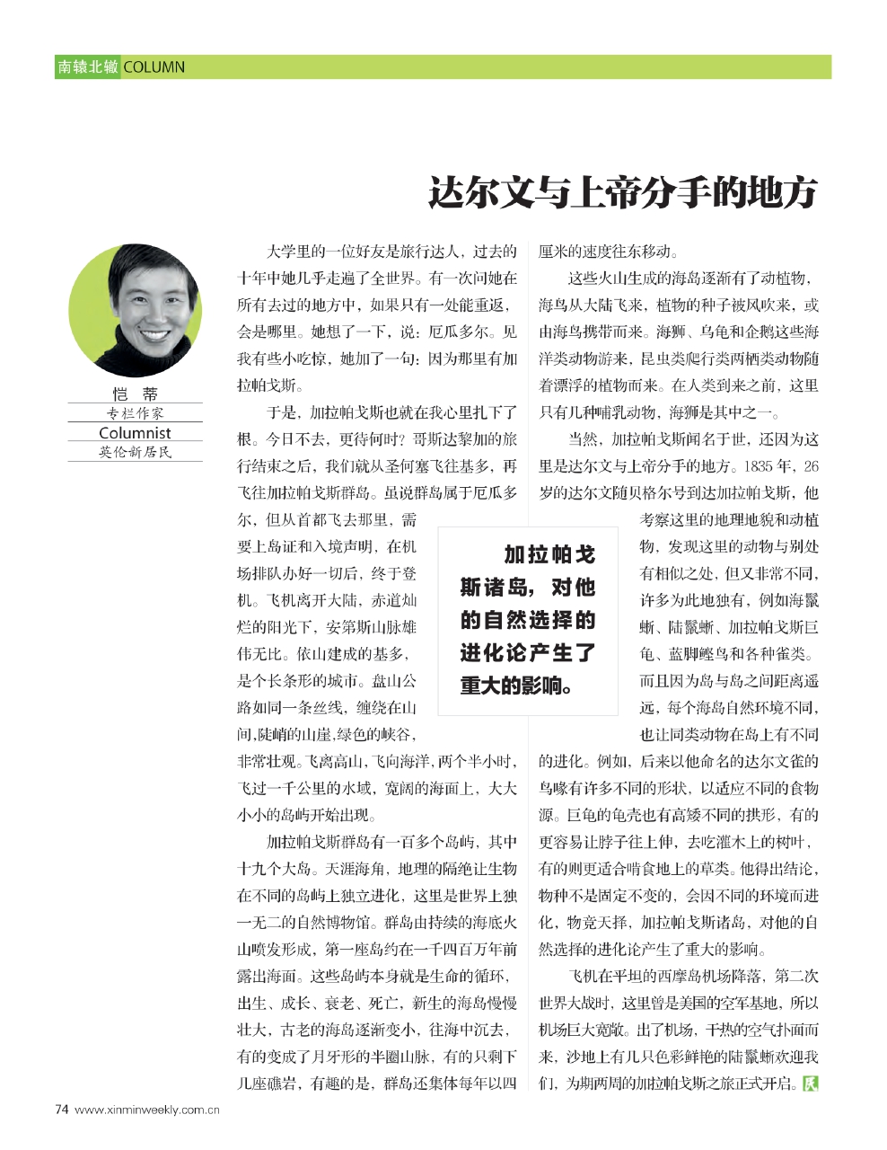 大学里的一位好友是旅行达人,过去的十年中她几乎走遍了全世界。有一次问她在所有去过的地方中,如果只有一处能重返,会是哪里。她想了一下,说:厄瓜多尔。见我有些小吃惊,她加了一句:因为那里有加拉帕戈斯。