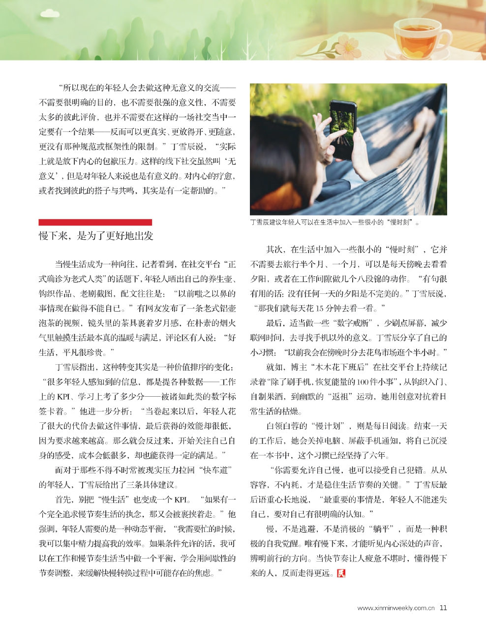 丁雪辰建议年轻人可以在生活中加入一些很小的“慢时刻”。