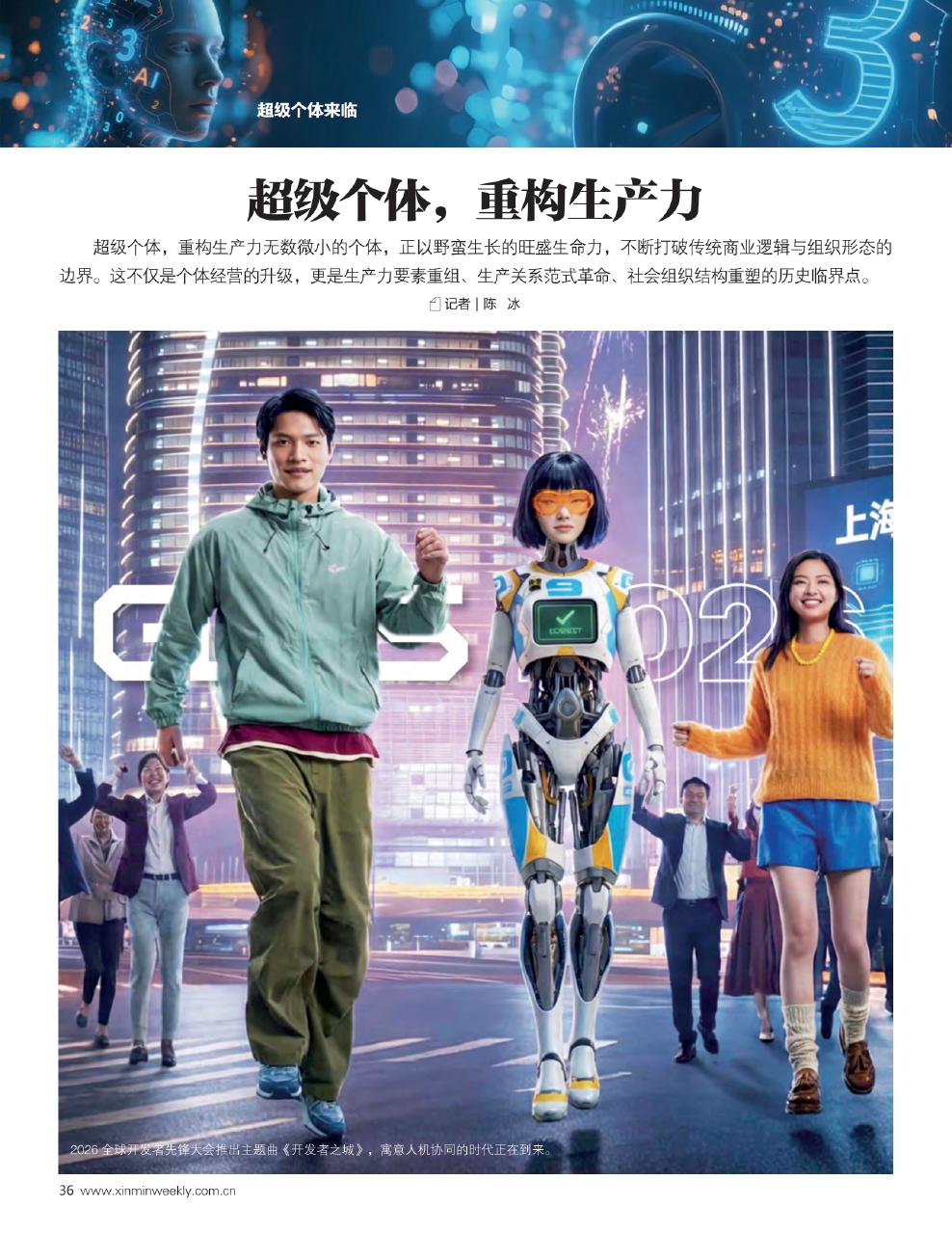 3月28日,在2026全球开发者先锋大会“AI+时代的企业创新与OPC发展论坛”上,《新民周刊》记者接触到了一群特立独行的超级个体。