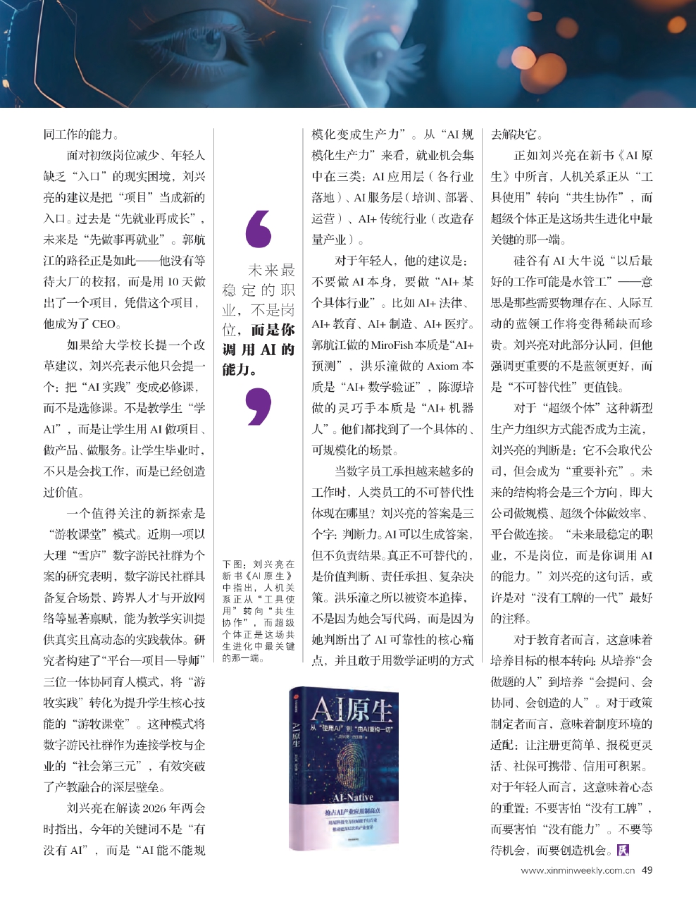 正如刘兴亮在新书《AI原生》中所言,人机关系正从“工具使用”转向“共生协作”,而超级个体正是这场共生进化中最关键的那一端。