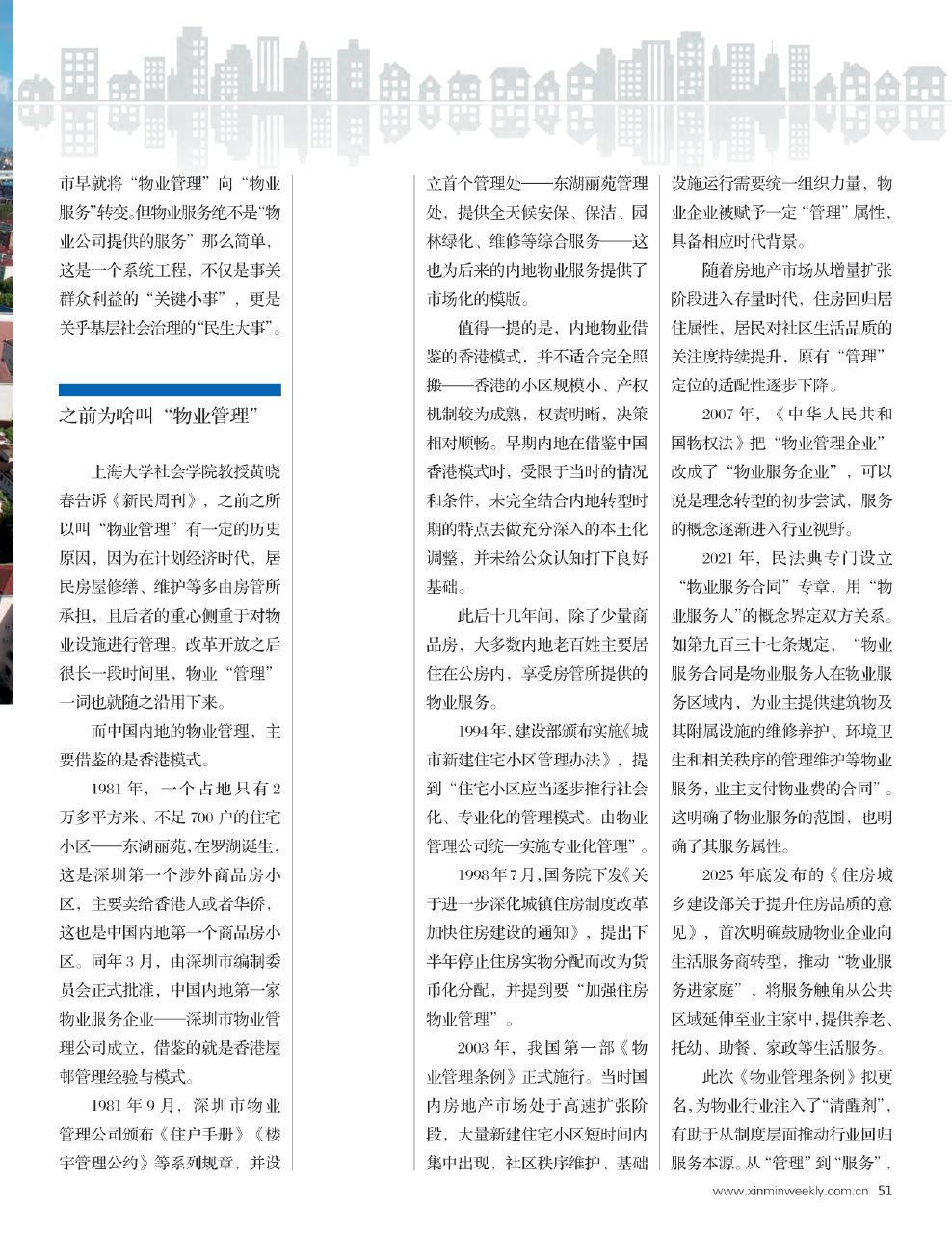 《新民周刊》采访发现,在操作层面,包括上海在内的大城市早就将“物业管理”向“物业服务”转变。但物业服务绝不是“物业公司提供的服务”那么简单,这是一个系统工程,不仅是事关群众利益的“关键小事”,更是关乎基层社会治理的“民生大事”。