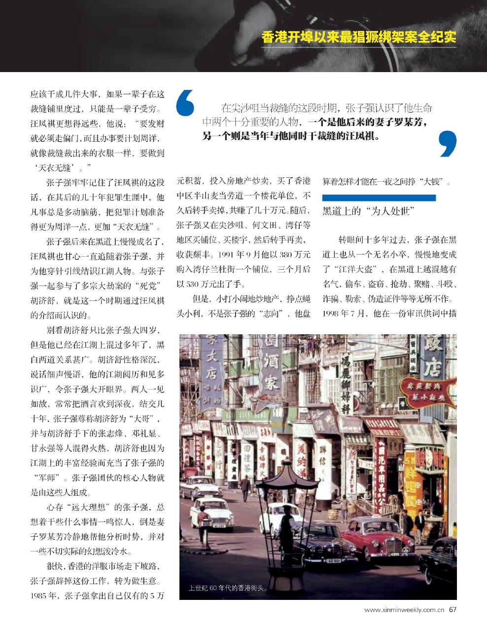 于是,父亲把他送到尖沙咀一间相熟的裁缝店,强迫他学习一门手艺。善良的老人天真地认为,离开了那个环境,张子强会学好的,即便不能出人头地,起码凭手艺,可以自食其力,能在这个社会上混口饭吃。
