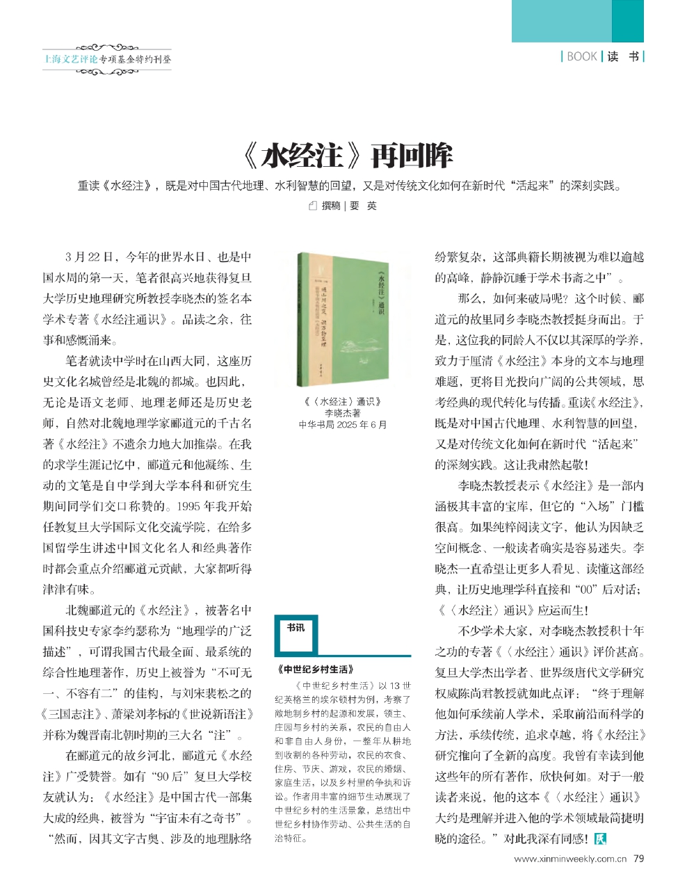 3月22日,今年的世界水日、也是中国水周的第一天,笔者很高兴地获得复旦大学历史地理研究所教授李晓杰的签名本学术专著《水经注通识》。品读之余,往事和感慨涌来。