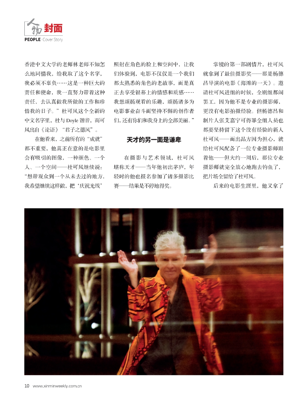 杜可风的身体里住着两个人:Chris和杜可风。这两个人就像电影《东邪西毒》里的慕容燕和慕容嫣,时常在他体内上演左右互搏的戏码。如今再问起他们相处得如何,他笑着说:“一点也没有改变:他们互相取笑,对对方的期望比对自己的期望要高。”