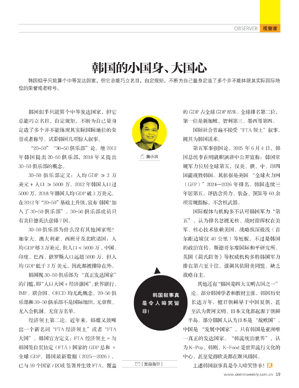 “20-50”“30-50俱乐部”论。继2012年韩国提出20-50俱乐部,2018年又提出30-50俱乐部的概念。