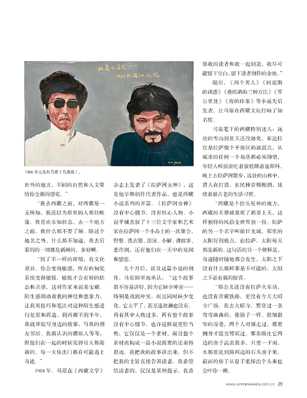 “西藏七年,我明白了很多问题。像信仰、神学、宗教之类,还有小说是怎么回事,艺术是怎么回事,还有我们从哪里来,我们是谁,我们往哪里去这样的命题,我那会儿都算是弄明白了。”