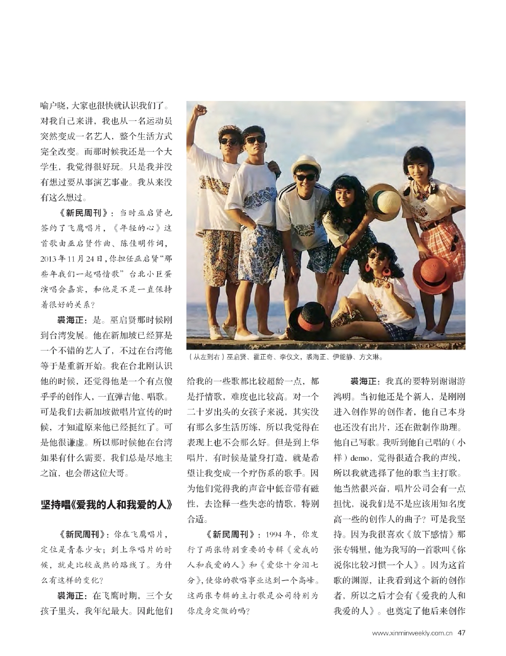 《新民周刊》:刘文正怎么考虑将你与方文琳、伊能静打造成“飞鹰三姝”这样一个组合的?
