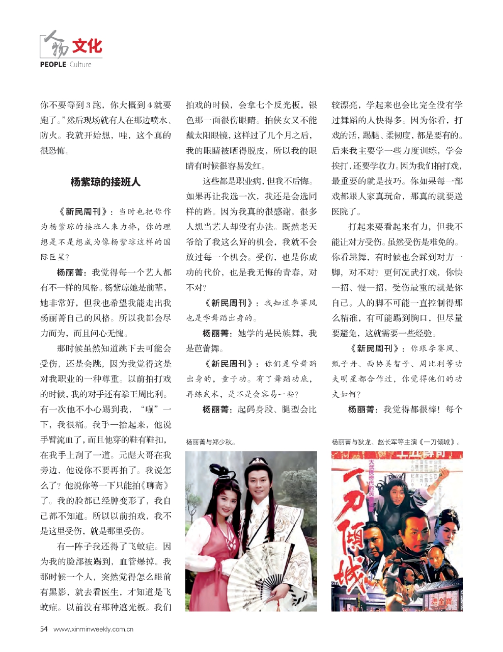4月3日,著名功夫女星杨丽菁在成都接受了《新民周刊》记者的独家专访,畅谈她入行以来的演艺历程,那是伤痛堆成的记忆,也是她的无悔青春。