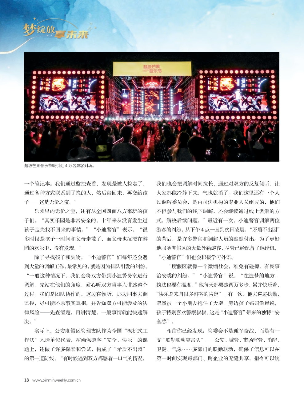 “度假区就像一个微缩社会,难免有碰擦、有民事治安类的纠纷。”“小迪警官”说,“在造梦的地方,执法也要有温度。”他每天都要走两万多步,累并快乐着,“快乐是来自很多游客的肯定”。有一次,他去巡逻执勤,忽然被一个小朋友抱住了大腿。旁边孩子妈妈解释说,孩子特别喜欢警察叔叔。这是“小迪警官”带来的独特“安全感”。