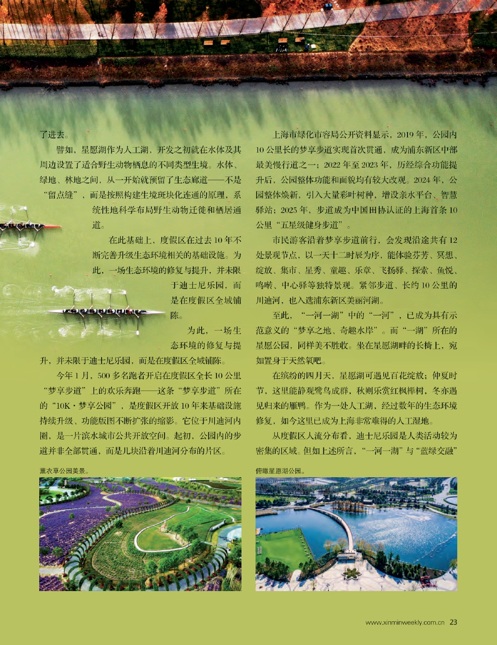梦享步道上晨跑者的脚步,湿地上飞翔的鸟儿,星愿湖畔观鸟者的望远镜,川迪河上皮划艇划开的水纹……度假区的未来,在这个绿色奇妙世界里,无论是人还是生物,都在享受自己的美好。