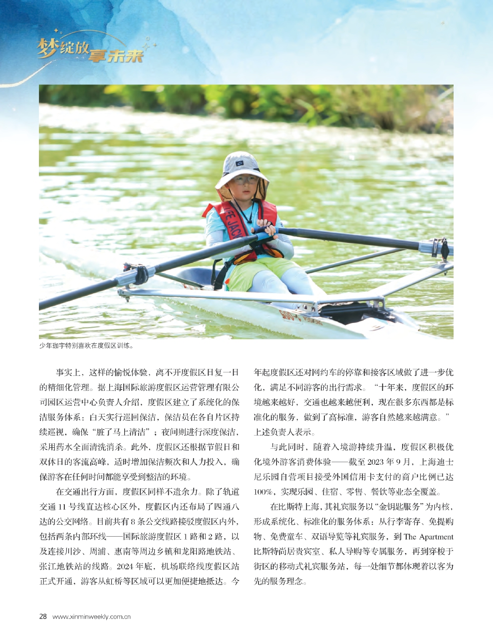 但度假区的服务范围不止于此。近年来,度假区积极引入多元化文体业态,为游客提供更多选择。2018年,新艇体育在度假区核心区落成上海首个对市民开放的城市赛艇中心——新艇申迪城市赛艇中心。