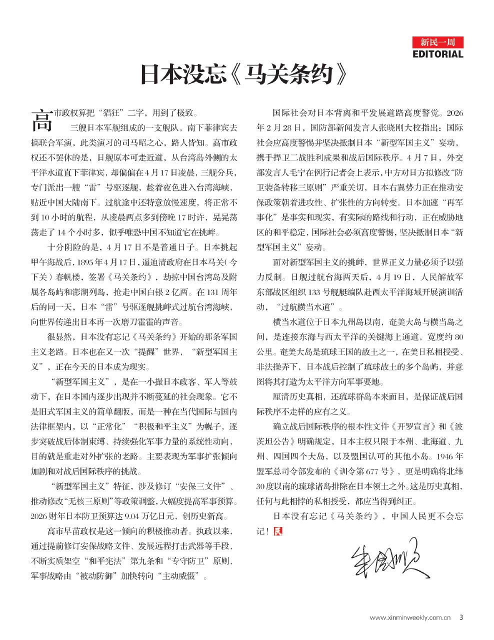 很显然,日本没有忘记《马关条约》开始的那条军国主义老路。日本也在又一次“提醒”世界,“新型军国主义”,正在今天的日本成为现实。