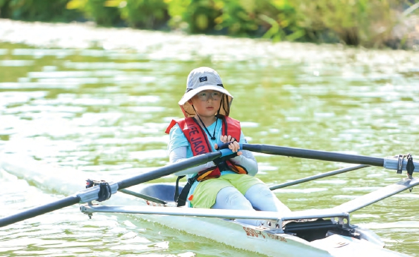 珈宇妈妈就是其中之一。她的儿子今年10岁半,从8岁半开始在新艇学赛艇,目前每周训练三次。虽然每次从家出发,前往度假区要半小时,但小朋友坚持一定要去度假区训练。“除了因为新艇是一家非常专业的俱乐部,度假区的水也特别干净,环境非常优美。”珈宇妈妈尤其对度假区的配套赞不绝口,“这里水域封闭无通航船只,水面平稳、水质清澈,是天然的安全训练场,孩子在这里训练,安全有保障。同时,度假区的景观优美、氛围积极,也能让孩子在愉悦中专注训练。此外,这里的跑步、骑行道等设施也很完备。”