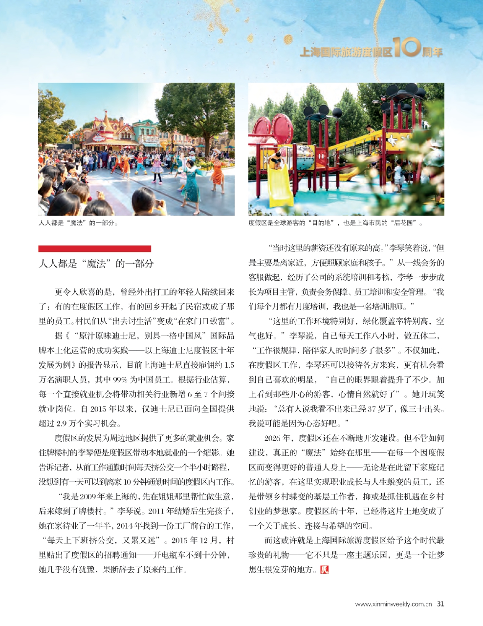 2026年,度假区还在不断地开发建设。但不管如何建设,真正的“魔法”始终在那里——在每一个因度假区而变得更好的普通人身上——无论是在此留下家庭记忆的游客,在这里实现职业成长与人生蜕变的员工,还是带领乡村蝶变的基层工作者,抑或是抓住机遇在乡村创业的梦想家。度假区的十年,已经将这片土地变成了一个关于成长、连接与希望的空间。