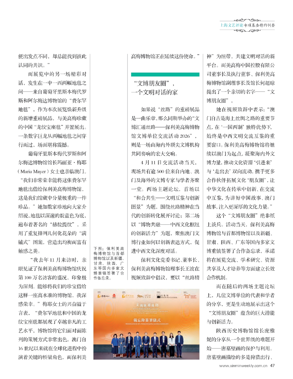 如果说“丝路”的重磅展品是一曲乐章,那么同期举办的“文博汇通丝路——保利美高梅博物馆文博单位交流活动2026”,则是一场由海内外顶尖文博机构共同奏响的宏大交响。