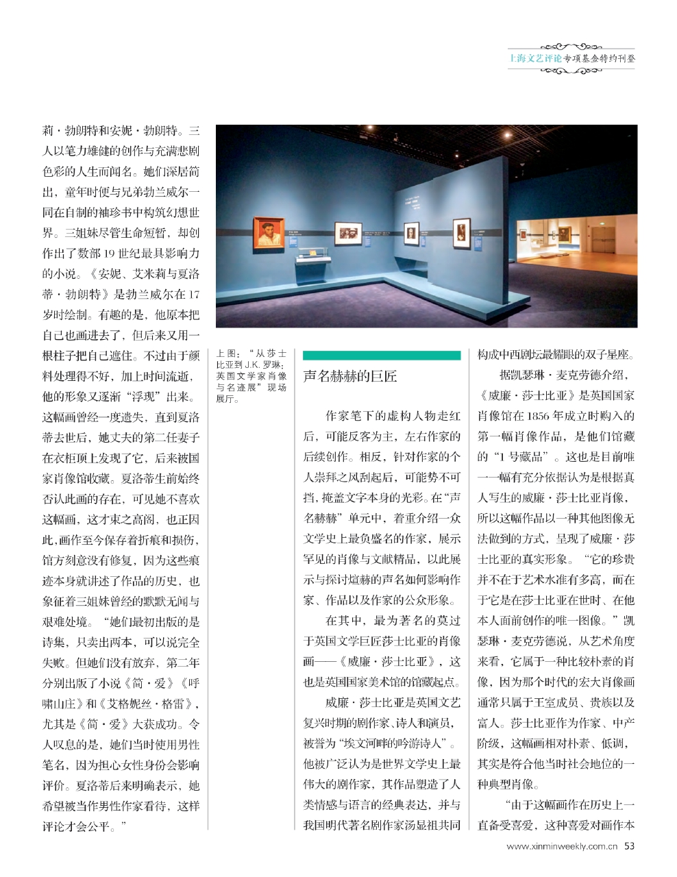 莎士比亚、弥尔顿、笛福、简·奥斯汀、拜伦、狄更斯……这些耳熟能详的文学大师犹如一颗颗珍珠串联起英国文学史的璀璨篇章。而今,他们的肖像和手稿来沪展出,以视觉方式展开英国文学叙事。