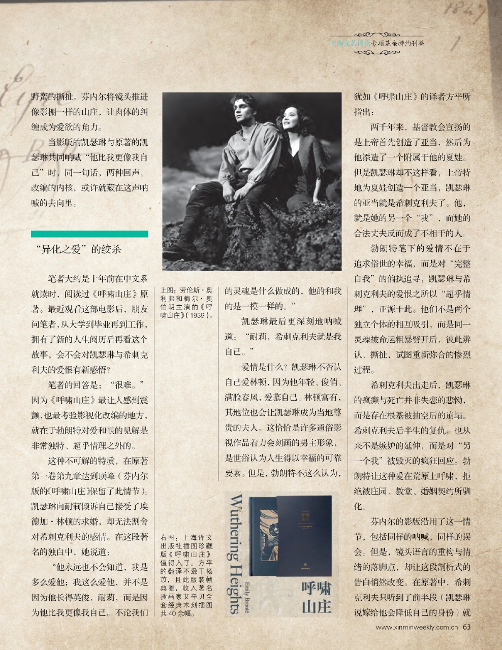 上图:劳伦斯·奥利弗和梅尔·奥伯朗主演的《呼啸山庄》(1939)。