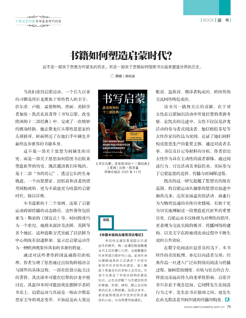 这不是一部关于思想为何诞生的历史,而是一部关于思想如何借图书出版来塑造世界的历史。凯茨邀请我们审视的,是十二部“书的传记”,透过它们的生命轨迹,一个由思想家、出版商和读者热情共同构成的、更为丰满也更为喧嚣的启蒙时代,得以浮现。